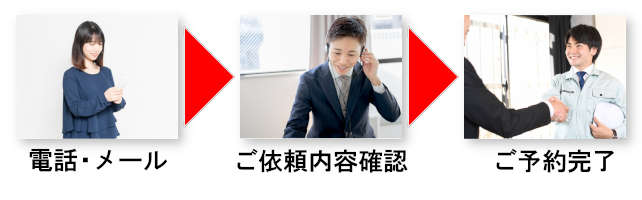 お電話・お問い合わせフォーム(メール)にて、ご相談内容の確認やお見積もりにお伺いする日時を決めさせて頂きます。【出張見積無料】